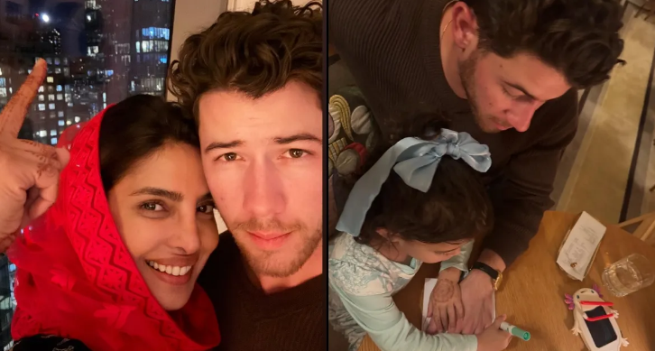 एक तस्वीर में नन्ही मालती अपने पापा निक के साथ आर्ट बनाती दिख रही हैं। एक तस्वीर में प्रियंका के दिवंगत पिता की तस्वीर दिखाई दे रही है। बाकी फोटोज में मालती ड्राइंग पेपर में अपना नाम लिखती हुई दिखाई दीं जिस पर प्रियंका और निक के साइन भी थे।