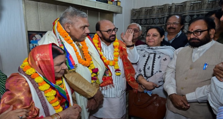 उच्च शिक्षा मंत्री योगेंद्र उपाध्याय सोमवार को क्रिकेटर दीप्ति शर्मा के अवधपुरी स्थित आवास पर पहुंचे। उन्होंने उनके परिजन से मुलाकात की। पिता भगवान शर्मा और मां सुशीला शर्मा का सम्मान किया।
