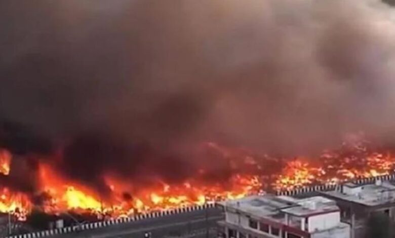 कई किलोमीटर दूर से देखा गया  धुएं का घना गुबार